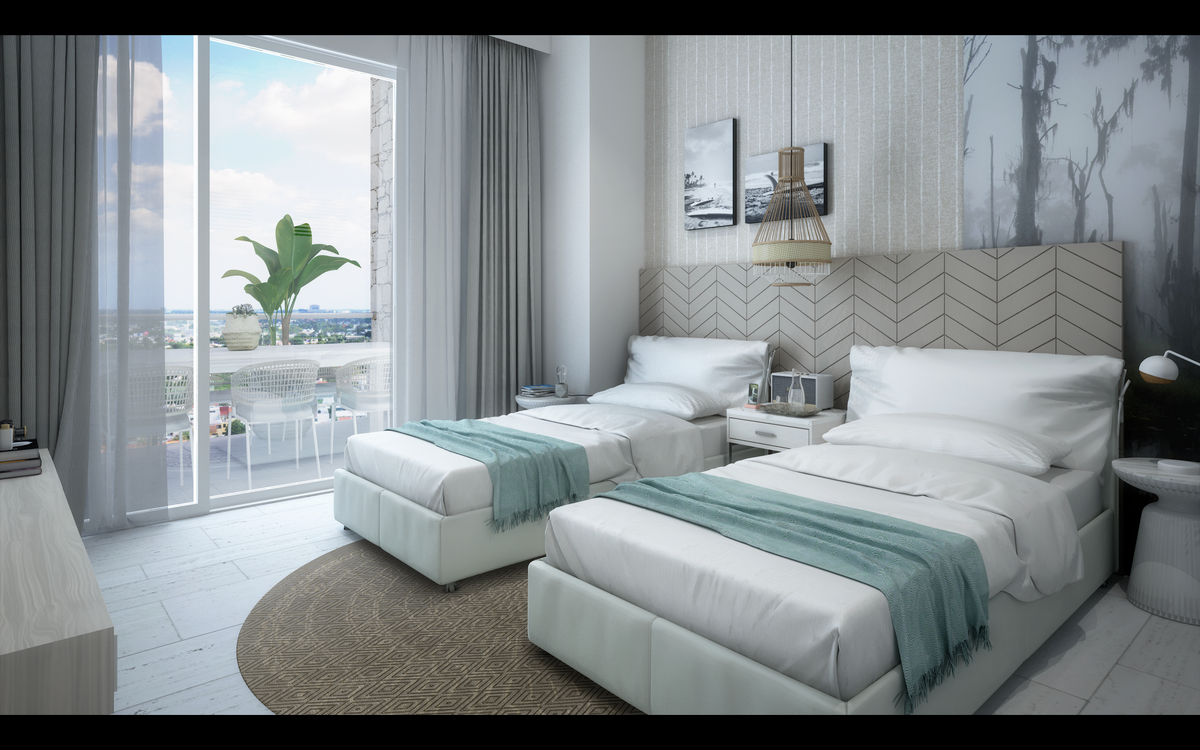 Todas las residencias cuentan con su propia terraza techada y se entregan completamente terminados con cocinas de diseño Italiano y cubiertas de granito, pisos de mármol, además de baños y closets con finos acabados.