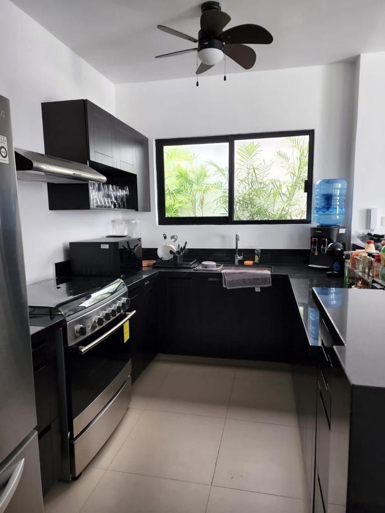 • Cocina vestida con estufa, campana, microondas y nevera doble cabina